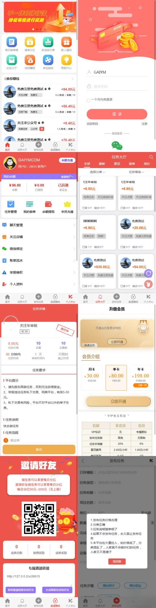 奖励与排行榜:完成任务、邀请收徒、参与新人福利和红包活动获得收益,系统根据完成量与收益生成做单排行榜与收徒排行榜。