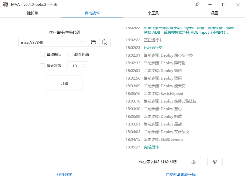 支持选择作业 JSON 文件,自动执行任务并通过视频演示进行操作
